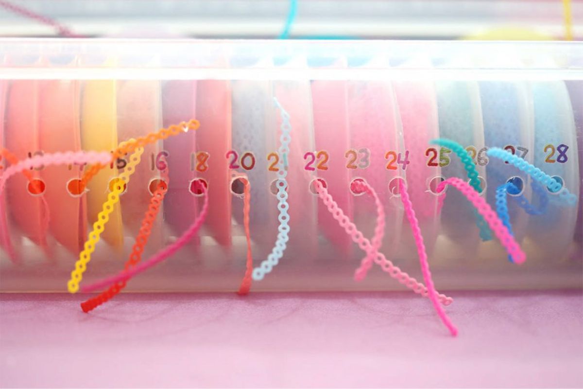 Chain braces come in different colors and spacing. Different colored chain braces cater to the personalized preferences of patients, with options such as black braces power chain, silver braces power chain, teal braces power chain and light blue braces power chain.