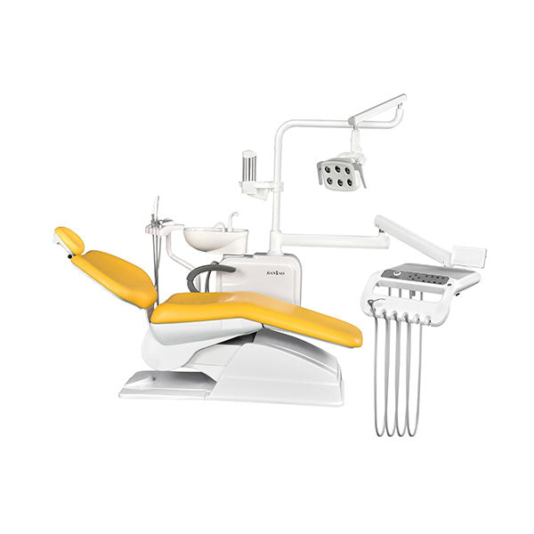 Isso inclui a peça de mão do airotor conectada à cadeira, o compressor de ar odontológico que fornece ar comprimido à cadeira, a unidade de sucção odontológica que se conecta à cadeira para remover líquidos, sangue, saliva e outros resíduos da boca do paciente e a luz odontológica que fornece iluminação na cadeira.